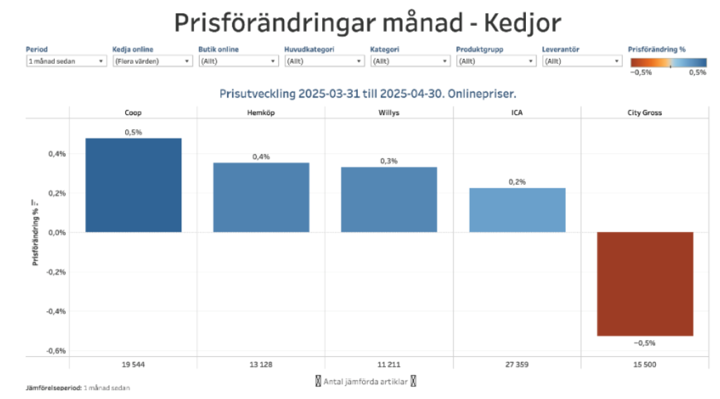 | 6 månader | +2,2% | (+3,0% mat) 40.229 artiklar | EMV +2,1% (10.864 art) |