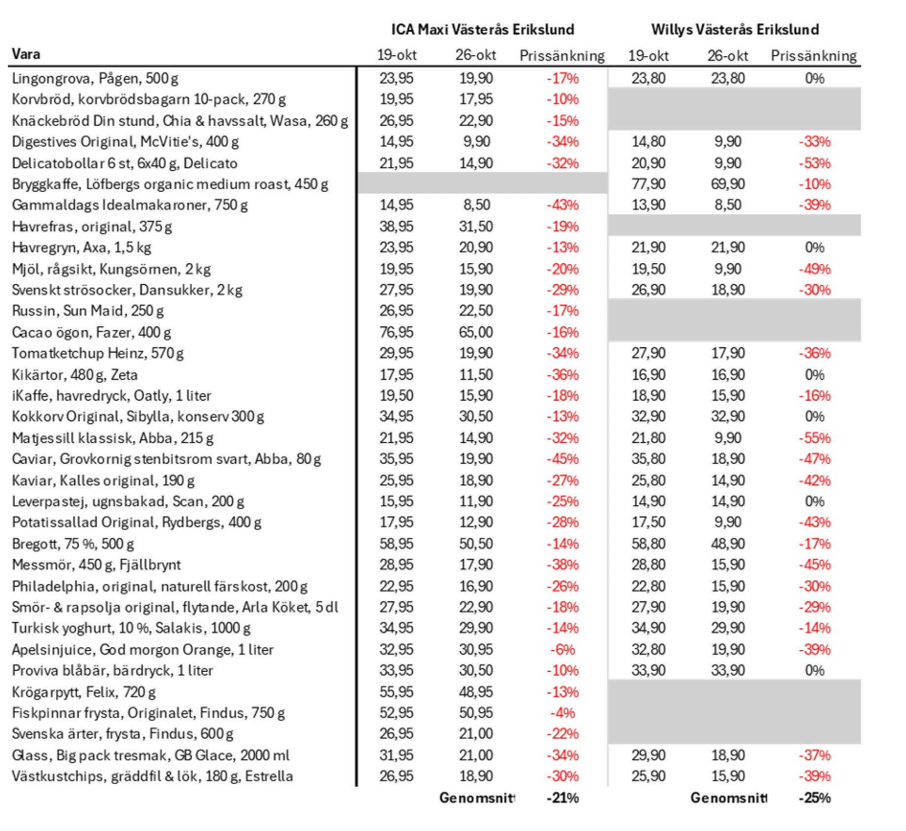 – Framför allt är det just Willys som på många håll sänkt priserna väldigt mycket.