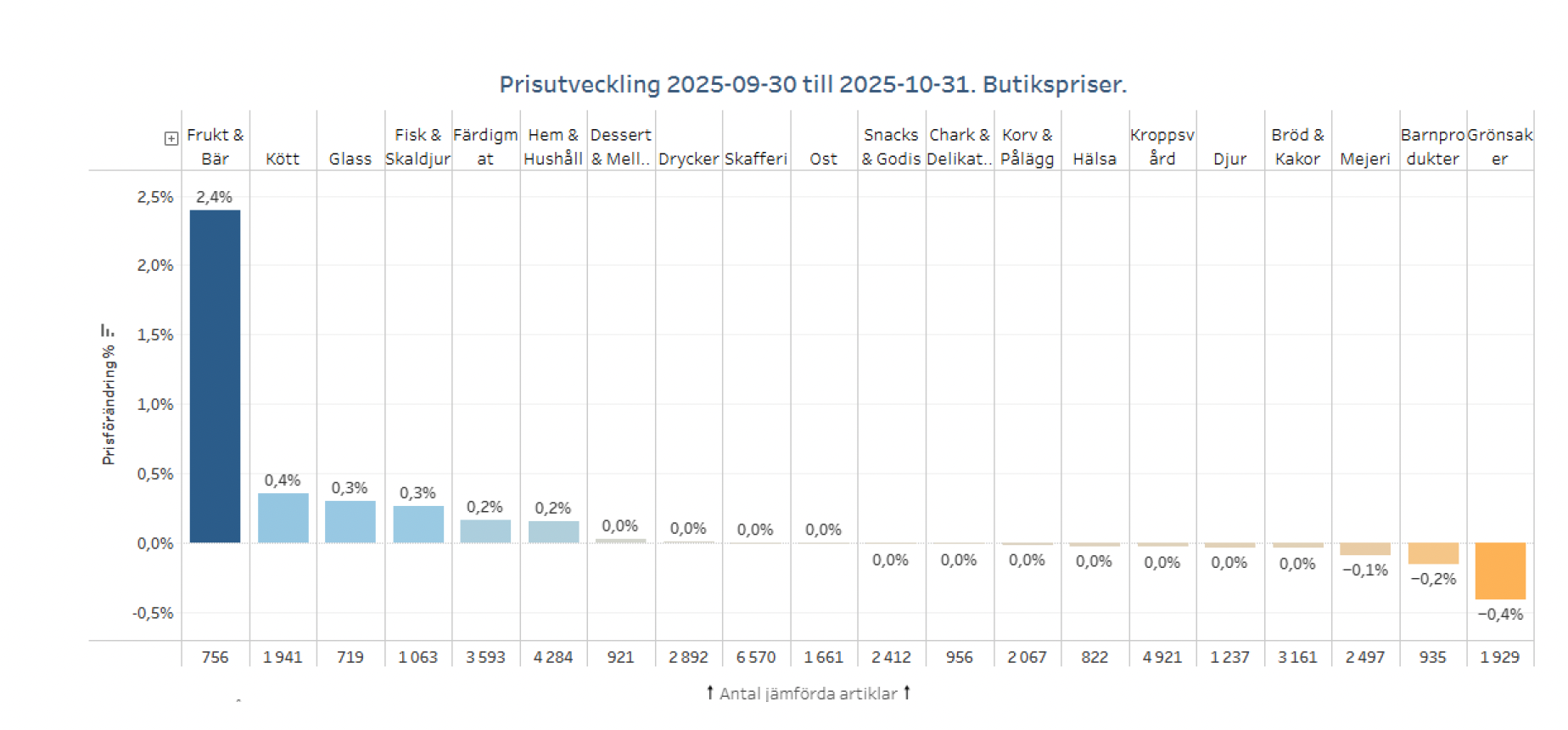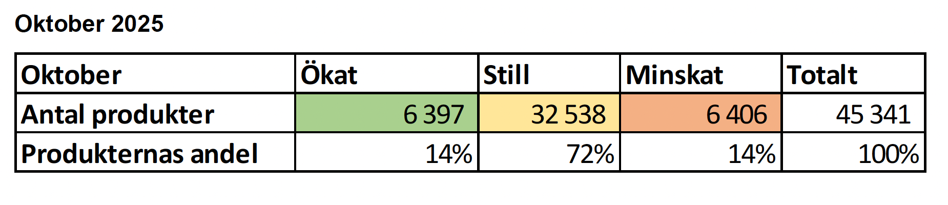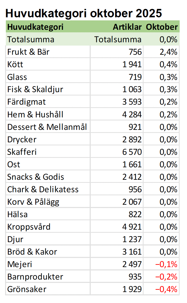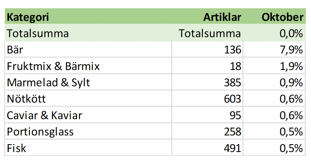 Kategorier som ökat mest i oktober 2025: